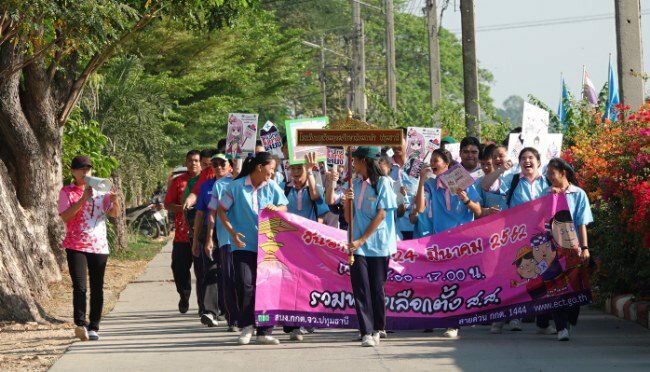 บรรยากาศในช่วงใกล้ถึงวันเลือกตั้ง หน่วยงานต่าง ๆ ได้ออกมาช่วยกันรณรงค์ให้ประชาชนออกมาเลือกตั้งในวันที่ 24 มีนาคมนี้ โดยเมื่อช่วงเช้าที่ผ่านมา กลุ่มนักเรียนจากโรงเรียนเตรียมอุดมศึกษาน้อมเกล้า ปทุมธานี จำนวน 50 คน ได้จัดขบวนออกเดินรณรงค์ไปในย่านชุมชนคลองระและใกล้เคียง พร้อมกับแจกแผ่นพับคู่มือการเลือกตั้ง ส.ส. ในวันอาทิตย์ที่ 24 มีนาคมนี้ ตั้งแต่เวลา 08.00-17.00 น. เพื่อเชิญชวนให้ประชาชนออกไปใช้สิทธิเลือกตั้งให้มากที่สุด