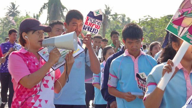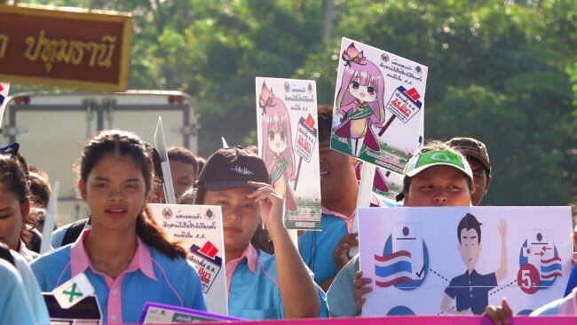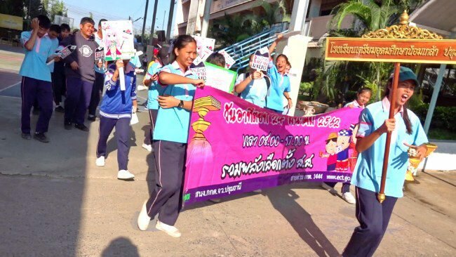 ปทุมธานี ครูนักเรียน โรงเรียนเตรียมอุดมศึกษาน้อมเกล้า ปทุมธานี เดินรณรงค์เชิญชวนประชาชนออกใช้สิทธิเลือกตั้ง ส.ส.