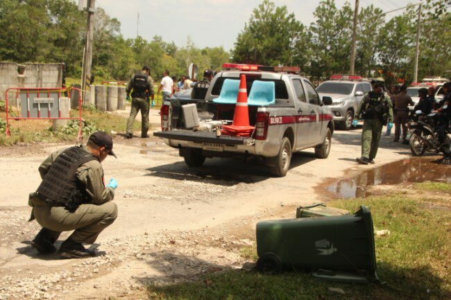 เมื่อผ่านที่พักของชุด ชรบ. คนร้ายที่นั่งซ้อนท้ายได้ขว้างระเบิดไปป์บอมบ์ ข้ามกำแพงรั้วมาตกที่บริเวณข้างเสาของตัวอาคาร ตนและเพื่อนซึ่งเดินออกจากตัวอาคารที่พัก ชรบ.ได้ประมาณ 3 เมตร ได้หันไปเห็นวัตถุต้องสงสัยที่ตกลงมา พบมีควันสีขาวพุ่งออกมาจากท่อเหล็กทรงกลม จึงได้พากันวิ่งออกมาอยู่ริมถนน และเมื่อผ่านไปประมาณไม่เกิน 10 วินาที จึงมีเสียงระเบิดดังขึ้น ตนจึงได้ใช้อาวุธปืนพก ขนาด 9 ม.ม.ยิงไล่หลังคนร้ายทั้ง 2 คนไป จำนวน 4 นัดซ้อน แต่คนร้ายสามารถขี่รถ จยย.หลบหนีไปได้ โดยมุ่งหน้าไปยังเส้นทางถนนเพชรเกษม ก่อนที่จะแจ้งไปยังศูนย์วิทยุสื่อสาร เพื่อสกัดเส้นทางหลบหนีของคนร้าย
