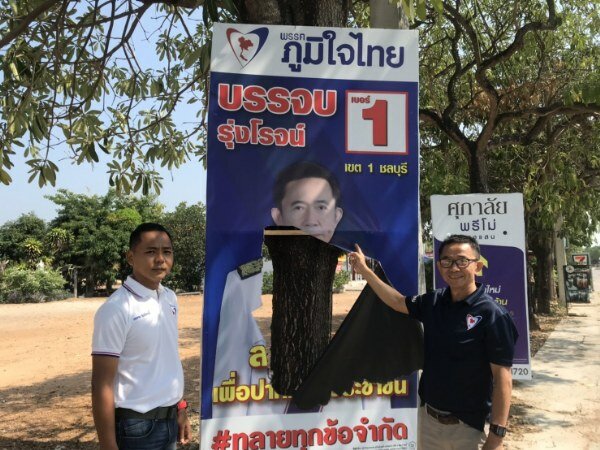 ชลบุรี ดุ ผู้สมัครพรรคภูมิใจไทยเขต 1 ชลบุรี โอดถูกทำลายป้ายหาเสียง วอนอย่าทำผิดกฎหมาย การต…